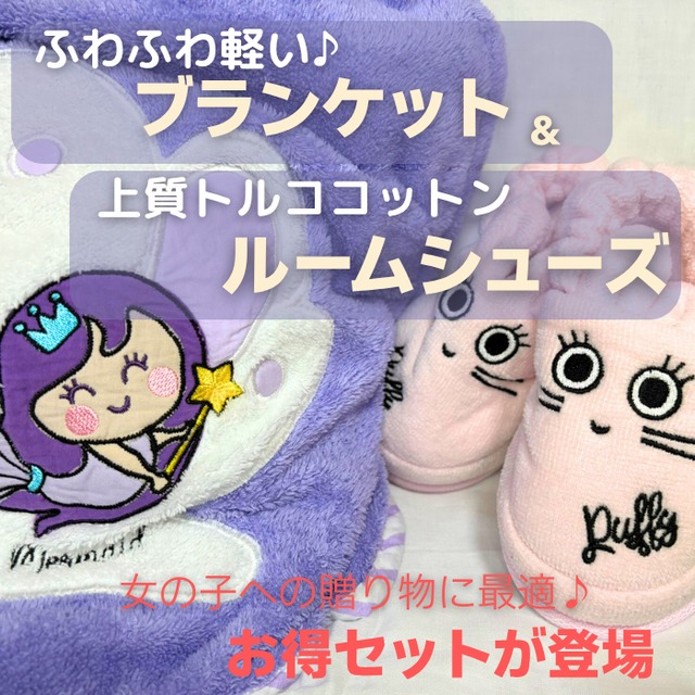 【ふわふわ♪気持ちいい】夏も冬も大活躍!ふわふわ軽いベビーカーにも便利なブランケットと細かな配慮が嬉しいルームシューズのお得セット♪